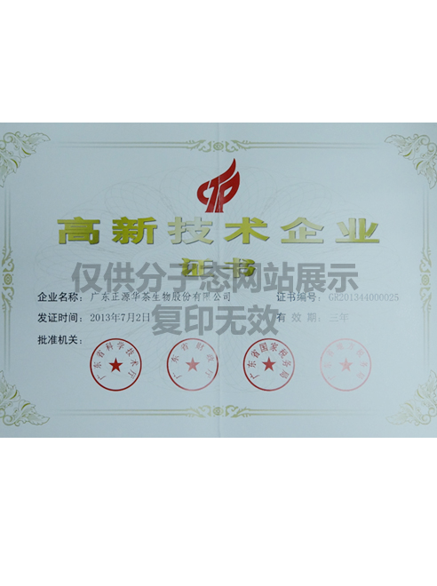 高新技術(shù)企業(yè)證書(shū)